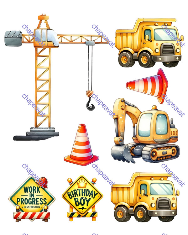 چاپ خوراکی طرح جرثقیل و لودر که در صفحه خوراکی A4 چیدمان شده است مناسب کیک قطر 20 و 22 میباشد .
