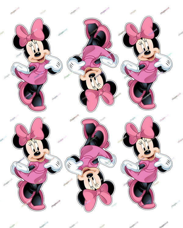 چاپ خوراکی طرح مینی موس که در صفحه خوراکی A4 چیدمان شده است مناسب کیک با قطر 15 و 18 و 20 میباشد.