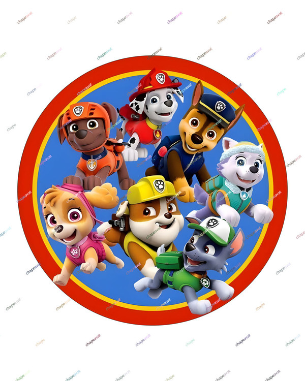 چاپ خوراکی طرح سگ های نگهبان که در صفحه خوراکی A4 خوراکی چیدمان شده است مناسب کیک با قطر 20 و 22 و 25 میباشد.