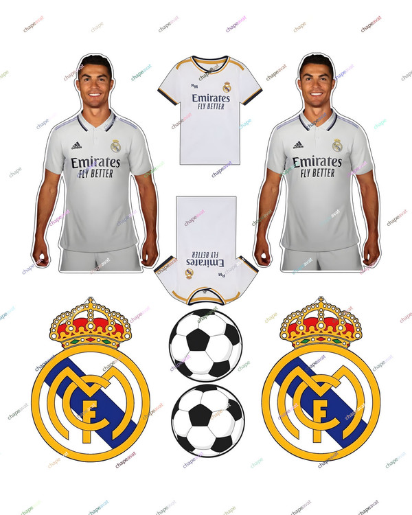چاپ خوراکی طرح باشگاه رئال داخل صفحه خوراکی A4 با ابعاد 20 در 24 چیدمان شده است.